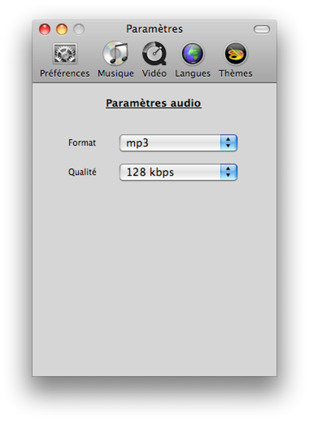 Très simple et entièrement en français, l'interface ne pose aucun problème de prise en main. La fenêtre principale liste les fichiers à convertir et l'état d'avancement des opérations en cours. Les réglages se font une fois pour toutes dans la fenêtre de préférences et ne comportent que les paramètres essentiels. Seulement deux réglages sont incontournables: le débit des fichiers et la taille de l'image pour les vidéos.